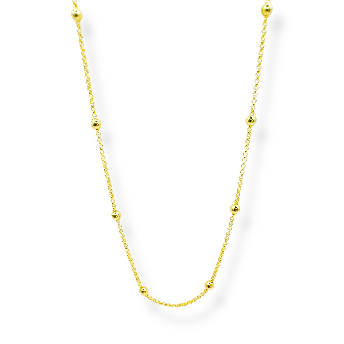 O Colar com Bolinhas é uma peça encantadora que combina simplicidade e estilo em um design versátil. Com bolinhas delicadas ao longo da corrente, este colar oferece um visual delicado e elegante. Feito em materiais de alta qualidade, o colar é durável e resistente ao desgaste. Leve e confortável de usar, é perfeito para adicionar um toque de charme ao seu visual, seja usado sozinho como uma peça delicada ou combinado com outros colares para criar um visual mais elaborado. O Colar com Bolinhas é uma escolha encantadora para quem busca uma joia versátil e atemporal em sua coleção.